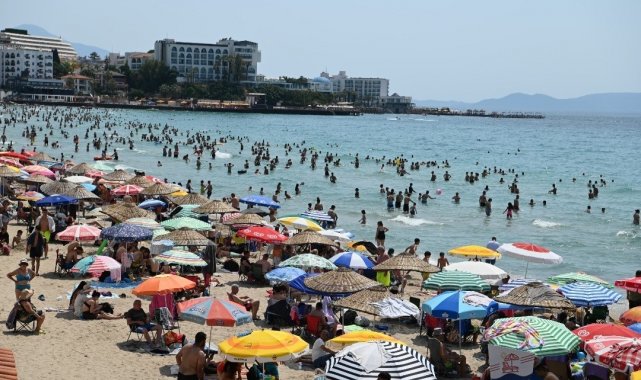 Kuşadası'nda plajlarda bayram yoğunluğu