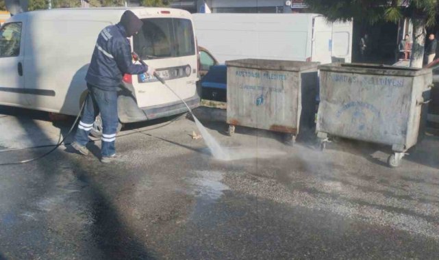 Kuşadası Belediyesi'ne bağlı Temizlik İşleri Müdürlüğü ekipleri, çalışmalarını ara vermeden sürdürüyor. Yaz kış demeden her gün düzenli olarak kent genelinde temizlik yapan ekipler, belirlenen program dahilinde farklı bölgelere de yoğunlaşıyor. Bu kapsamda son olarak 10 kişiden oluşan bir ekip, 2 araçla birlikte temizliğinden sorumlu olunmamasına rağmen Kuşadası Sanayi Sitesi'nde detaylı hijyen ve dezenfeksiyon çalışması yaptı. Sokakların köpüklü suyla yıkandığı çalışmada ayrıca galvanizli ve yer altına monte edilmiş çöp konteynerleri de yüksek sıcaklıktaki su ve özel solüsyonlar aracılığıyla kir ve kokudan arındırıldı. Yol kenarlarında bulunan atıkların da alındığı çalışma sonunda Kuşadası Sanayi Sitesi tertemiz oldu.