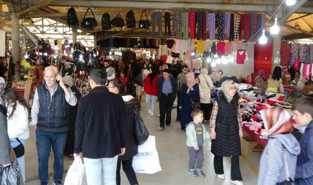 Yaklaşık 200 esnafın tezgah açtığı pazarda, geniş ürün yelpazesiyle bayramlık alışveriş yapmak isteyen vatandaşlara hizmet sunuluyor. Pazarın, Arife gecesine kadar açık kalacağı belirtildi.