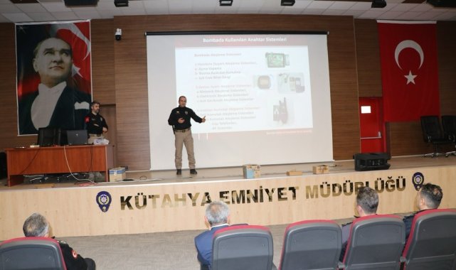 Kütahya İl Emniyet Müdürlüğü Bomba İmha ve İnceleme Şube Müdürlüğü ekipleri tarafından emniyet personeline yönelik "İntihar saldırılarının tespiti ve alınacak önlemler" konulu bilgilendirme semineri düzenlendi.