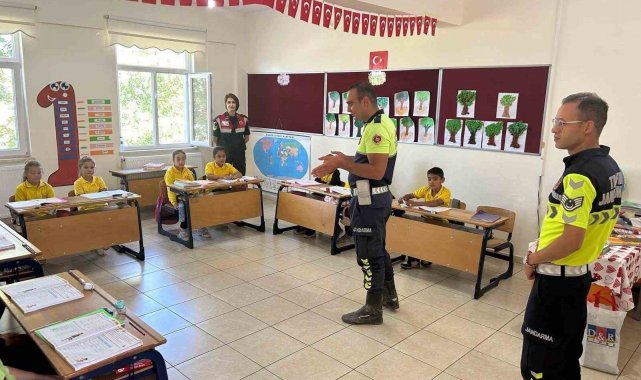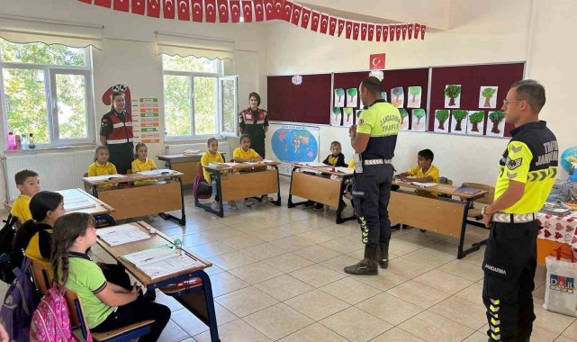 Kütahya'da jandarma tarafından Merkez Perli İlkokulunda öğrencilere trafik eğitimi verildiği bildirildi.