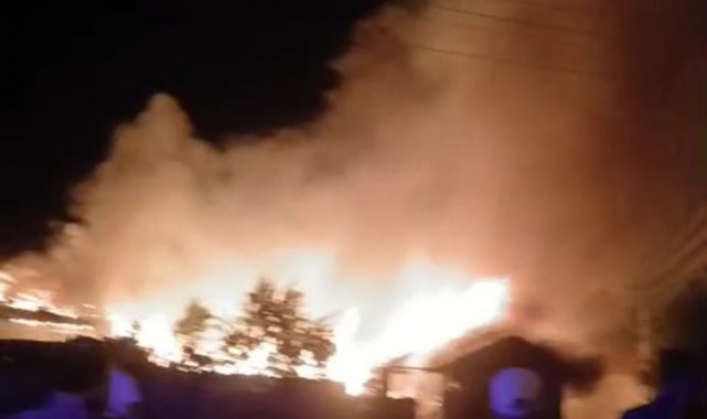 Yangında Selahaddin Kaçmaz ve Mehmet Büyükçalı'ya ait 2 ev, 3 samanlık ve 2 ahır kullanılamaz hale geldi.