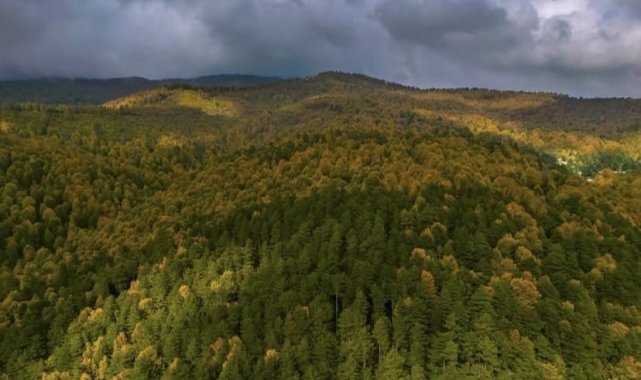 Kütahya'da sonbahar mevsiminin gelmesiyle ortaya çıkan manzaralar mest ediyor. Kütahya-Bursa sınırlarında yer alan Domaniç Dağları'nda ağaçlar, sonbaharla birlikte farklı renklere büründü. Renk cümbüşünün yaşandığı ormanlık alanlarda ortaya kartpostallık görüntüler çıktı. Görenleri mest eden sonbahar manzaraları dron ile havadan görüntülendi.