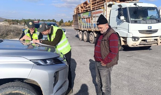 Kütahya'da orman emvali yüklü araçlar denetlendi
