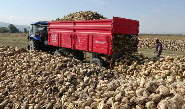 İsmail Altınkaya isimli üretici de, "Bu yıl kuraklık olmasına rağmen verim çok çok iyi. Pancar çok sulanarak elde edilen bir ürün. Emeğimizin karşılığını aldık şükürler olsun" ifadelerini kullandı.