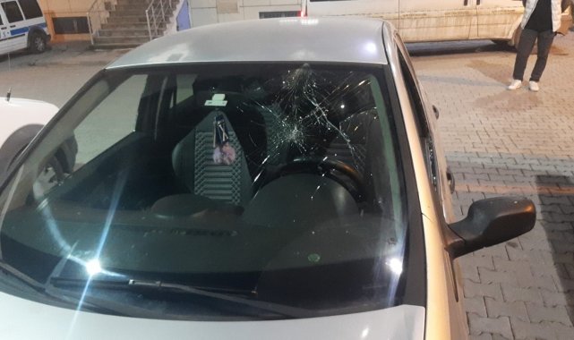 Aracın camları, sol dikiz aynası ve arka çamurluğu da zarar gördü. Baba ve oğlun sağlık kontrollerinde hayati tehlikelerinin olmadığı belirtildi.