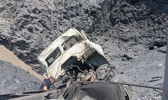 Kütahya'nın Altıntaş ilçesinde bir maden ocağında döküm yaptığı esnada uçuruma yuvarlanan hafriyat kamyonunun sürücüsü hayatını kaybetti.