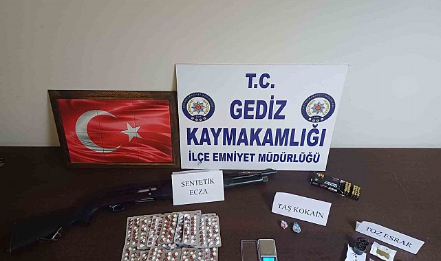 Yürütülen soruşturma kapsamında il dışından Kütahya'ya uyuşturucu madde getireceği tespit edilen şahısların bulunduğu araç, Gediz ilçesi sınırlarında durduruldu. Araçta bulunan S.G. (24), A.S. (32), R.Ç. (36) ve Ö.Ç. (67) yakalanarak gözaltına alındı. Şüphelilerin üzerlerinde, araçlarında ve ikametlerinde yapılan aramalarda; 528 adet sentetik ecza, 2 parça halinde 8 gram taş kokain, 4 gram eroin, 11 adet kenevir tohumu, 1 adet esrar öğütücü, 1 adet hassas terazi, 1 adet ruhsatsız av tüfeği ve 25 adet fişek ele geçirildi.