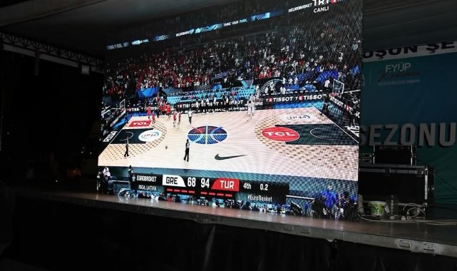 Türkiye A Millî Basketbol Takımı'nın EuroBasket 2025 yarı finalinde Yunanistan ile oynadığı karşılaşma, Kütahya Belediyesi'nin organizasyonuyla belediye bahçesinde kurulan dev ekranda vatandaşlarla birlikte izlendi.