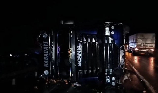 Edinilen bilgilere göre, 07 TBZ 44 plakalı tır, yağış nedeniyle sürücüsünün direksiyon hâkimiyetini kaybetmesi sonucu yan yattı. Kazayla birlikte tırın dorsesinde bulunan meyveler karayoluna saçıldı. Kazada sürücünün yara almadığı öğrenilirken, olay bölgede kısa süreli paniğe neden oldu. Başka bir aracın kazaya karışmaması ise muhtemel bir facianın önüne geçti. İhbar üzerine olay yerine itfaiye, sağlık ve jandarma ekipleri sevk edildi. Güvenlik önlemleri kapsamında Kütahya-Eskişehir karayolu bir süre trafiğe kapatıldı.