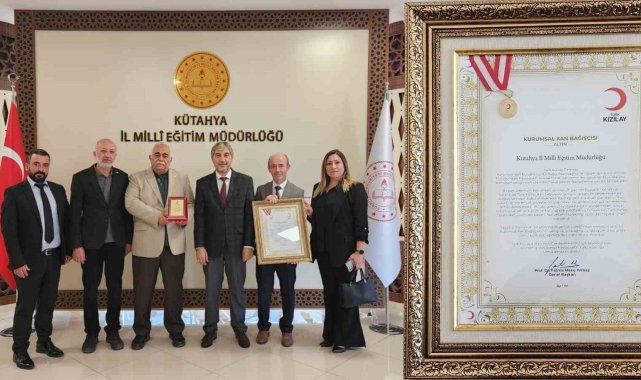 Kütahya İl Milli Eğitim Müdürlüğüne, Türk Kızılay Derneği tarafından, kan bağışına yönelik gönüllülük faaliyetlerine destek veren kurumlara verilen "Kurumsal Kan Bağışçısı Altın Ödülü" takdim edildi.