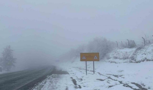 Kütahya'nın Domaniç ilçesi ile Bursa'nın İnegöl ilçesini birbirine bağlayan kara yolunda kar ve sis etkili oluyor.