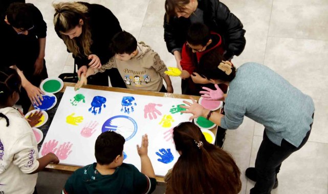 Ortaya çıkan bu özel tablo, etkinliğin sonunda çocuklara hediye edilerek unutulmaz bir anı haline getirildi. Sanatın birleştirici gücüyle otizme dikkat çekilen etkinlikte, neşeli ve samimi anlar yaşandı.