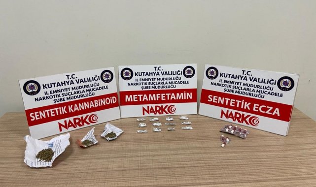Kütahya İl Emniyet Müdürlüğü Asayiş Şube Müdürlüğü ekiplerince Saray Mahallesi üzerinde durdurulan O. V. isimli şahsın üzerinden, tek parça halinde, 0,23 gram metamfetamin, iki parça halinde, toplam 1,20 gram bonzai ve iki parça halinde, toplam 0,51 gr esrar maddesi ele geçirildi.