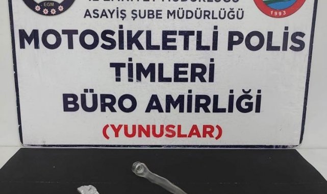 Asayiş Şube Müdürlüğüne bağlı Motosikletli Polis Timlerince Saray Mahallesinde yapılan çalışmalarda, H.G.S. (39) isimli şahsın sevk ve idaresindeki araçta ve şahsın yapılan üst aramasında, 1.61 gram metamfetamin ve 1 adet payp ele geçirildi.