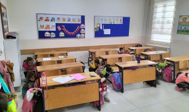 Kütahya'nın Hisarcık ilçesi Cumhuriyet İlkokulu'nda deprem tatbikat...