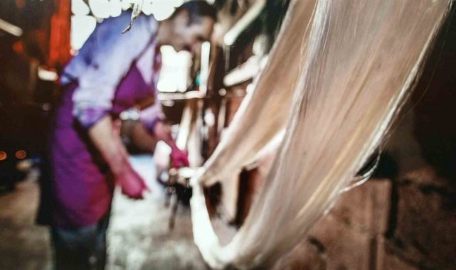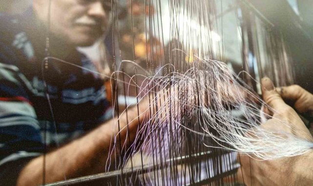 Parlak yüzeyi ve renkli çizgili desenleriyle tanınan ipek ve pamuk karışımı olan bu kumaş geleneksel tezgâhlarda büyük bir emek ve ustalıkla dokunuyor.