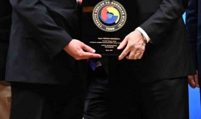 Yapılan açılış konuşmalarının ardından TOBB 2025 Yılı Hizmet Şeref Belgesi ve Plaket Takdim Töreni, Birlik çatısı altında 10. 20. ve 30. yılını tamamlayan üyelere plaket takdimiyle devam etti. Törende 20 yıldır camiaya verdiği hizmetlerden dolayı Kuşadası Ticaret Odası Başkanı Serdar Akdoğan'a 'Hizmet Şeref Belgesi' verildi. Akdoğan'a belgesi Cumhurbaşkanı Recep Tayyip Erdoğan tarafından takdim edildi.