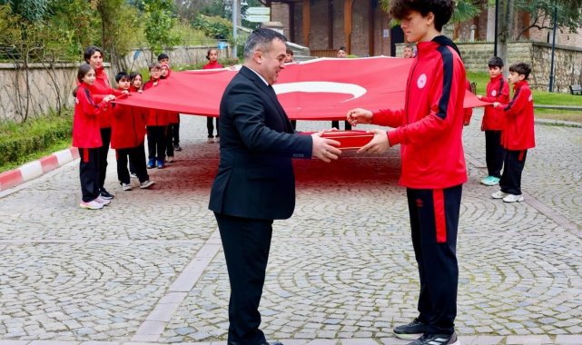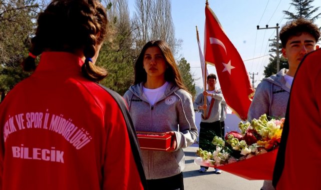 Cumhurbaşkanı Recep Tayyip Erdoğan'a 18 Mart'ta sunulmak üzere Gelibolu Yarımadası'ndan alınan toprak, deniz suyu ve Türk bayrağı, Bursalı atletler tarafından Bilecikli sporculara teslim edildi.