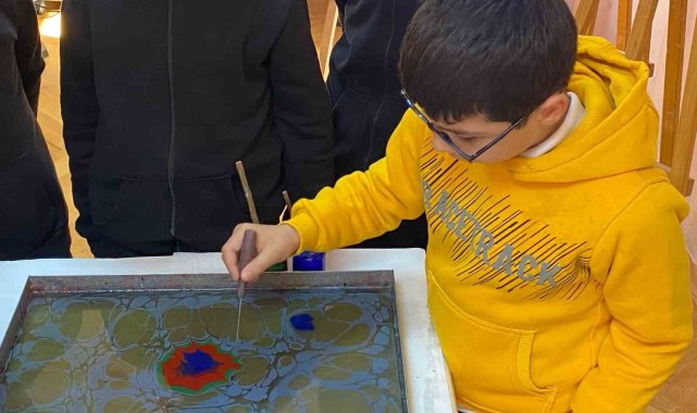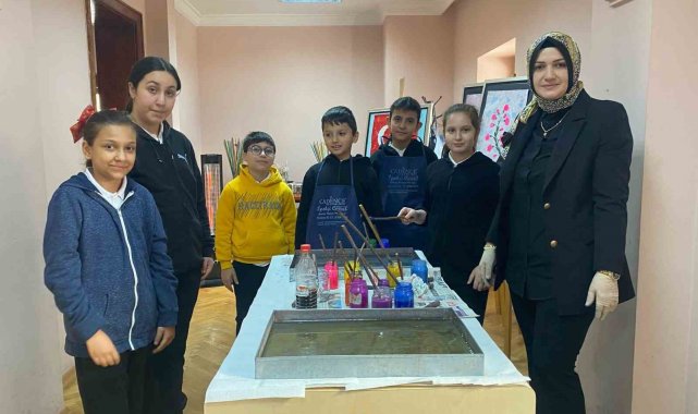 'Kütüphaneler' projesi çerçevesinde öğrenciler ebru sanatı yaptı