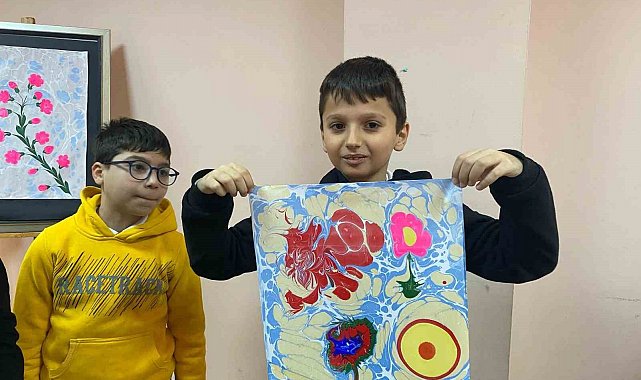 Ebru sanatını ilk defa yapan öğrencilerden Eslem Çelikkale, "Daha önce yapmadım. Çok güzel bir etkinlik. Çiçek yaptım. Bence herkes yapmalı herkese öneriyorum" dedi.