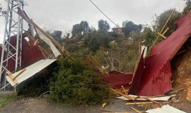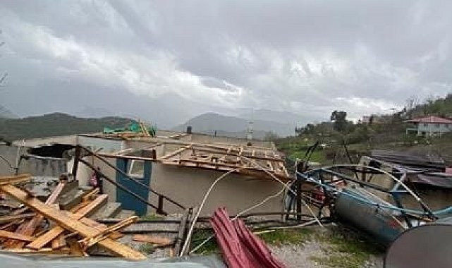Kahramanmaraş'ın Andırın ilçesinde etkili olan kuvvetli rüzgar, bazı çatıların uçmasına neden oldu.