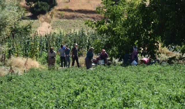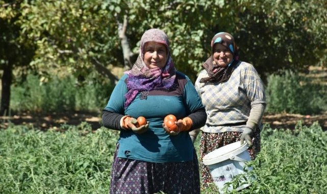 Kuyucak'ta toprakla buluşturulan 220 bin domates fidesinde hasat yapıldı