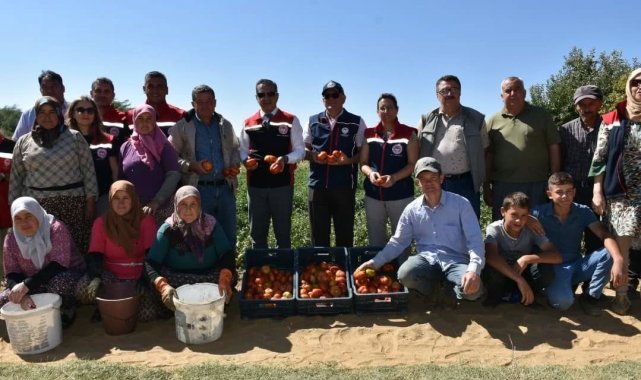 Aydın genelinde üreticilere tarımsal destek verilmeye devam ediliyor. Bu çerçevede Aydın İl Tarım ve Orman Müdürlüğü tarafından yürütülen Tarım Arazilerin Kullanımının Etkinleştirilmesi (TAKE) proje çerçevesinde tohum ve fidan dağıtımları da aralıksız sürüyor. İl genelinde yürütülen proje çerçevesinde ise Kuyucak'ta üreticilere geçtiğimiz Mayıs ayında 220 bin adet geçci domates fidesi dağıtılmıştı. Toprakla buluşturulan domates fideleri 3 ayın sonunda hasat olgunluğuna ulaştı. Düzenlenen törenle domateslerin hasadı gerçekleştirilirken, proje kapsamında bugüne kadar Kuyucak, Nazilli, Buharkent ve Karacasu ilçelerinde toplam 357 bin 143 domates fidesi toprakla buluşturuldu.