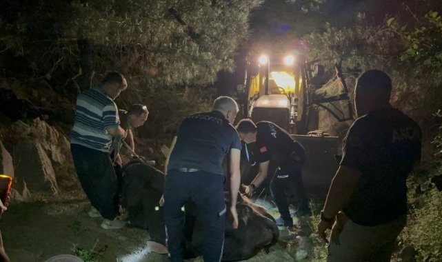 Kuyuda bulunan kayıp inek saatler süren çalışmayla kurtarıldı