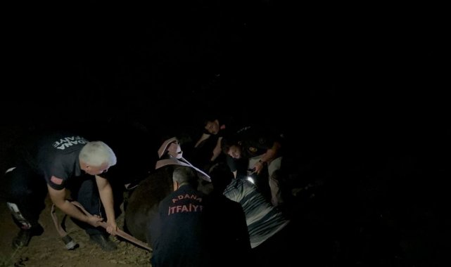 Adana'nın Kozan ilçesinde 2 gündür kayıp olarak aranan inek, kuyuda bulundu, saatler süren çalışmayla kurtarıldı.