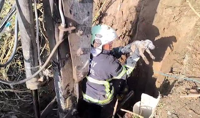 Kuyuda mahsur kalan yavru köpeğin imdadına itfaiye yetişti