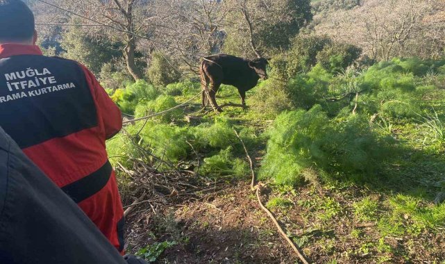 Muğla'nın Bodrum ilçesinde yaklaşık 10 metrelik su kuyusuna düşen buzağı, itfaiye ekipleri tarafından kurtarıldı.