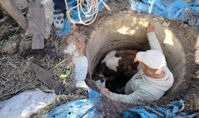 Kuyuya düşen buzağı zorlu çalışmayla kurtarıldı