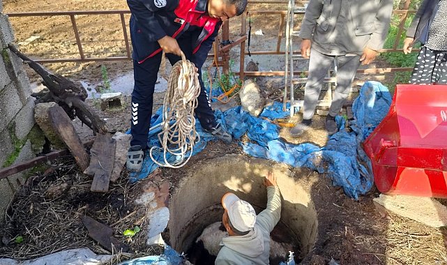 Hatay'da kuyuya düşerek mahsur kalan buzağı itfaiye ekiplerinin zorlu çalışmasıyla kurtarıldı.