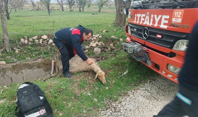 Kuyuya düsen koyun itfaiye ekipleri tarafından kurtarıldı