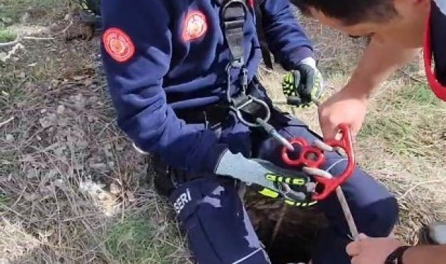 Melikgazi ilçesine bağlı Becen Mahallesi'nde bulunan bir bağ evinin su kuyusuna yavru köpeğin düştüğünü gören vatandaşlar, durumu itfaiyeye haber verdi. Kısa süre içerisinde olay yerine gelen ekipler, su kuyusuna halat ile inerek köpeğe ulaştı. Yavru köpeği kuyudan çıkaran ekipler, yaralanan köpeği tedavi altına aldı.