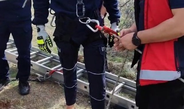 Kayseri'de su kuyusuna düşen köpek, itfaiye ekipleri tarafından kurtarıldı.
