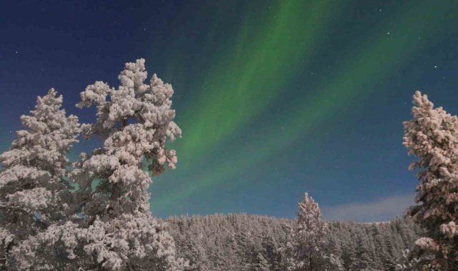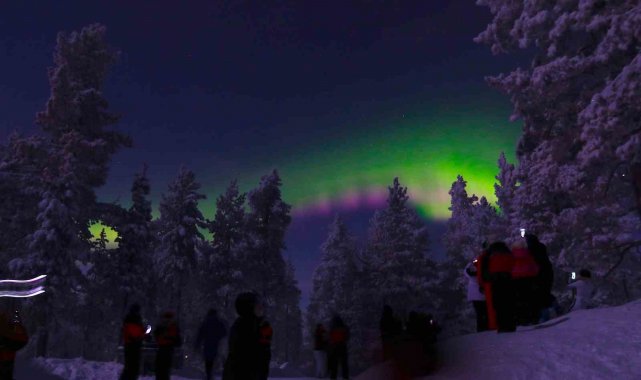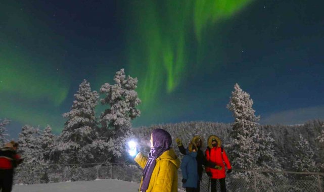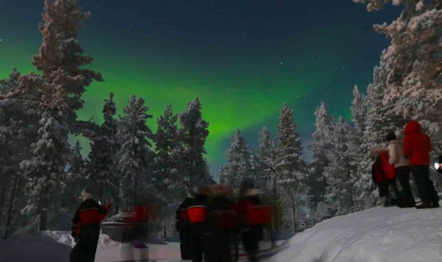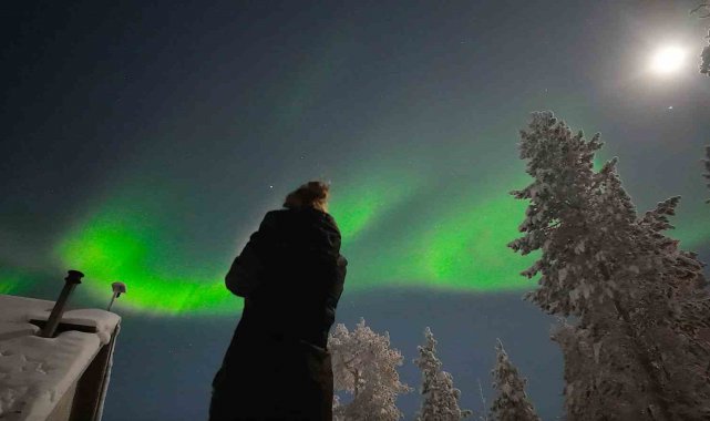 Sadece belirli zamanlarda görünen Kuzey Işıkları, Finlandiya'nın Saariselka bölgesinde Türk turistlere unutulmaz bir görsel şölen yaşattı. Son yılların en net gösterisine şahit olan turistler, doğanın sunduğu görsel şöleni bol bol fotoğrafladı. Adeta gökyüzünde dans eden ışıklar, izleyenlere masal gibi gösteri sundu.