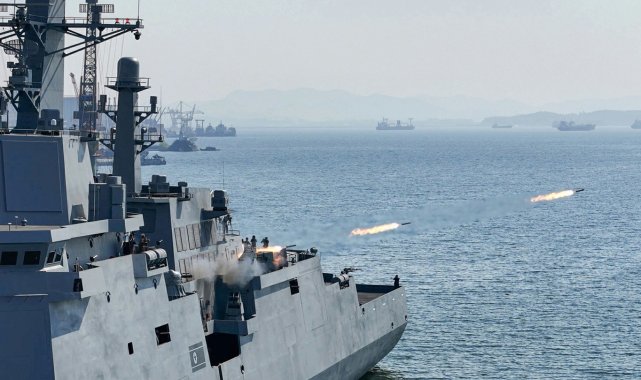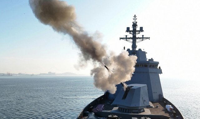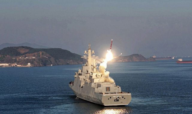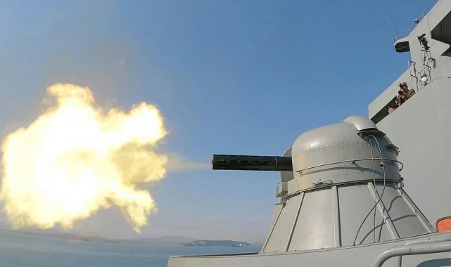 Kuzey Kore yeni savaş gemisindeki füze ve top sistemlerinin ilk test atışını gerçekleştirdi