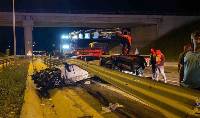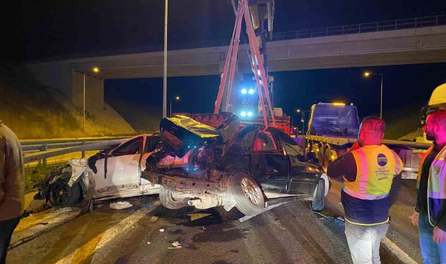 Kuzey Marmara Otoyolu Kocaeli geçişinde 3 aracın karıştığı trafik kazasında 12 kişi yaralandı. Kaza yeri adeta savaş alanına döndü.