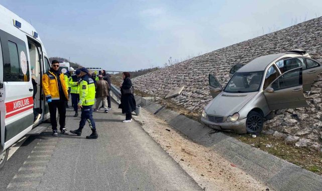 Kuzey Marmara'da kazaya karışan otomobil istinat duvarına çıktı