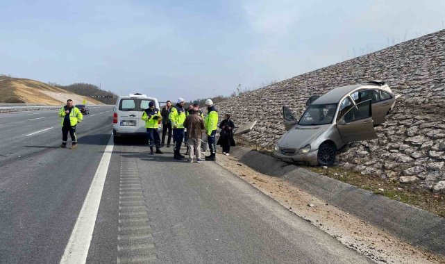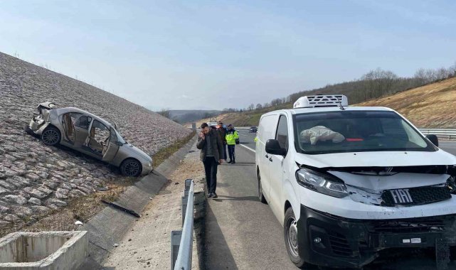 Kuzey Marmara Otoyolu'nun Kocaeli geçişinde otomobil ve panelvan araç çarpıştı. 2 kişinin yaralandığı kazada otomobil, çarpmanın şiddetiyle istinat duvarına çıktı.