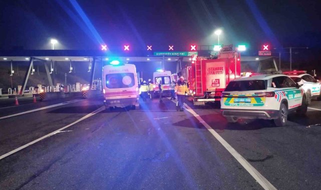 Kuzey Marmara Otoyolu Kurnaköy gişelerinde otomobil takla attı: 2 yaralı