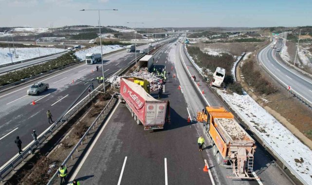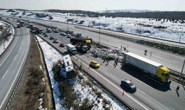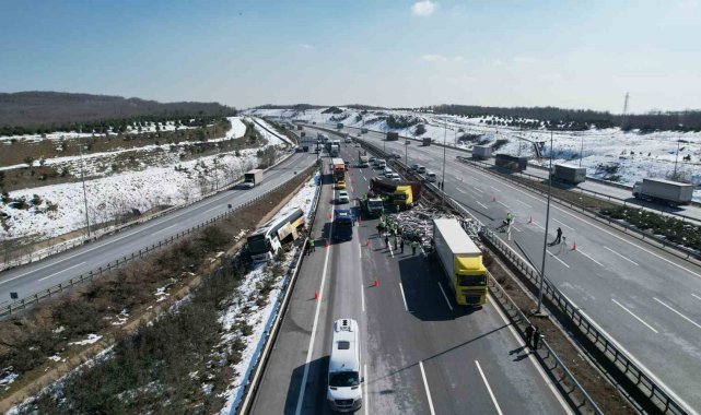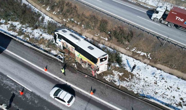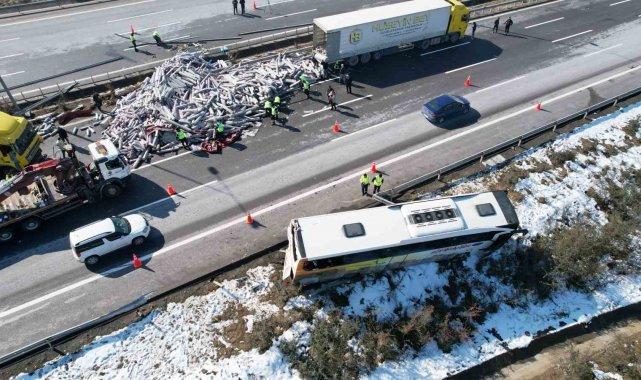 Kuzey Marmara Otoyolu'nda ani fren yapan yolcu otobüsüne tır çarptı