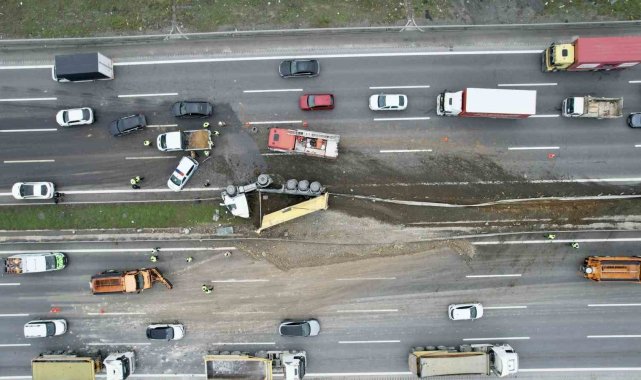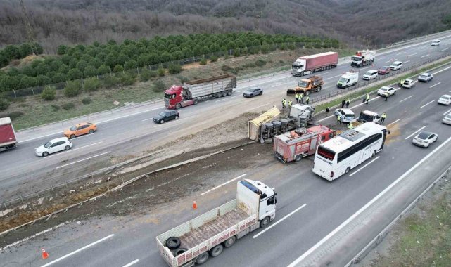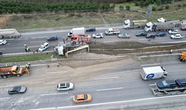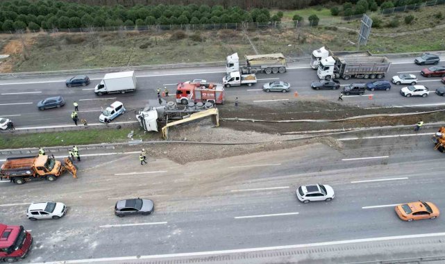 Polis ekipleri otoyol üzerinde geniş güvenlik önlemleri alırken, karayolları ve belediye ekipleri yola dökülen hafriyatın temizlenmesi ve kamyonun bulunduğu yerden kaldırılması için çalışma başlattı. Kamyonun vinç yardımıyla kaldırılmasının ardından yolun kademeli olarak trafiğe açılması bekleniyor.