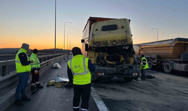 Kuzey Marmara Otoyolu'nda kamyon tıra arkadan çarptı: 1 yaralı