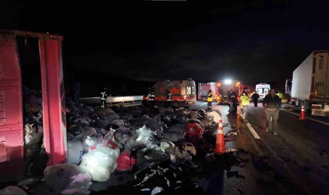 Kuzey Marmara Otoyolu'nun Çekmeköy mevkiinde iddiaya göre bir tırın arkadan çarptığı kamyonet devrildi. Kazanın etkisiyle tekstil ürünleri taşıyan kamyonetteki torbalar yol üzerine savruldu.