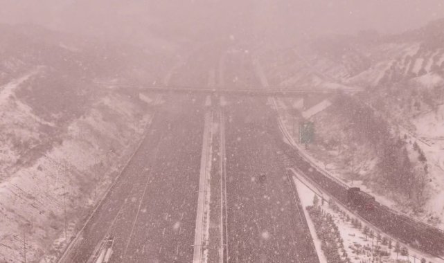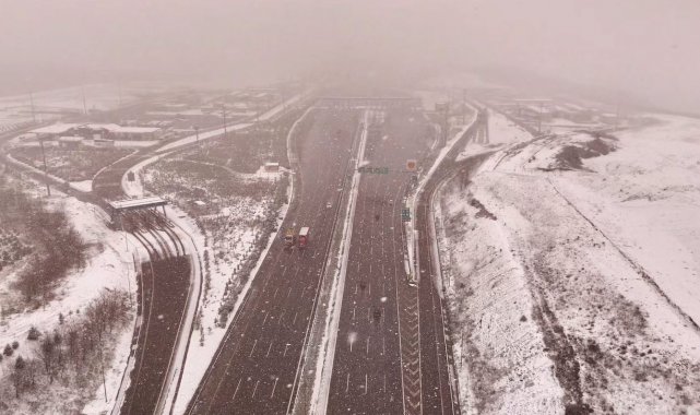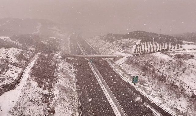 Kuzey Marmara Otoyolu'nda kar yağışı havadan görüntülendi