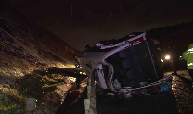 Kuzey Marmara Otoyolu Arnavutköy Boğazköy İstiklal mevkiinde kar yağışı sonrası kayganlaşan yolda servis aracı kayarak yan devrildi. Kazada 11 kişi hafif yaralandı.
