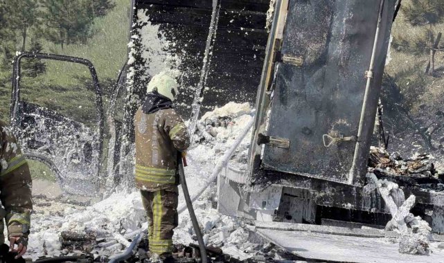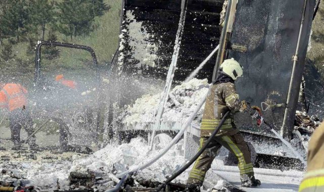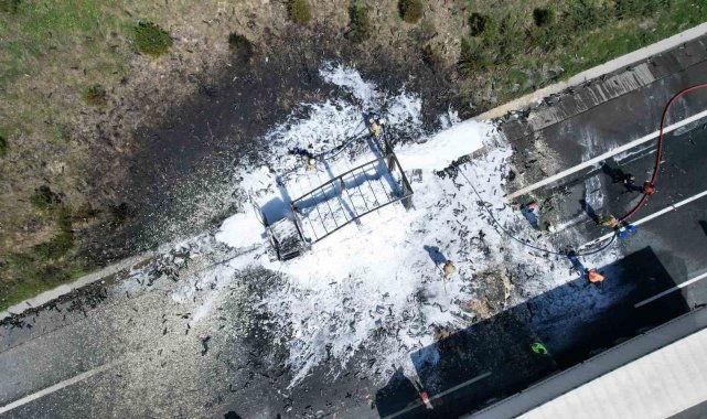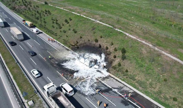 Kuzey Marmara Otoyolu'nda köpük sprey yüklü kamyon alev alev yandı